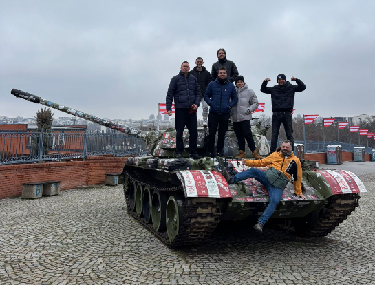 Kilka godzin przed meczem doszło do starcia Grobari z Delije w wyniku czego skradziony został bęben kibiców Zvezdy, ale do tego wrócimy w późniejszej części artykułu. My natomiast podczas zwiedzania stadionu postanowiliśmy zrobić sobie wspólne zdjęcie na jednym z bardziej kontrowersyjnych elementów Marakany czyli legendarnym T-55
